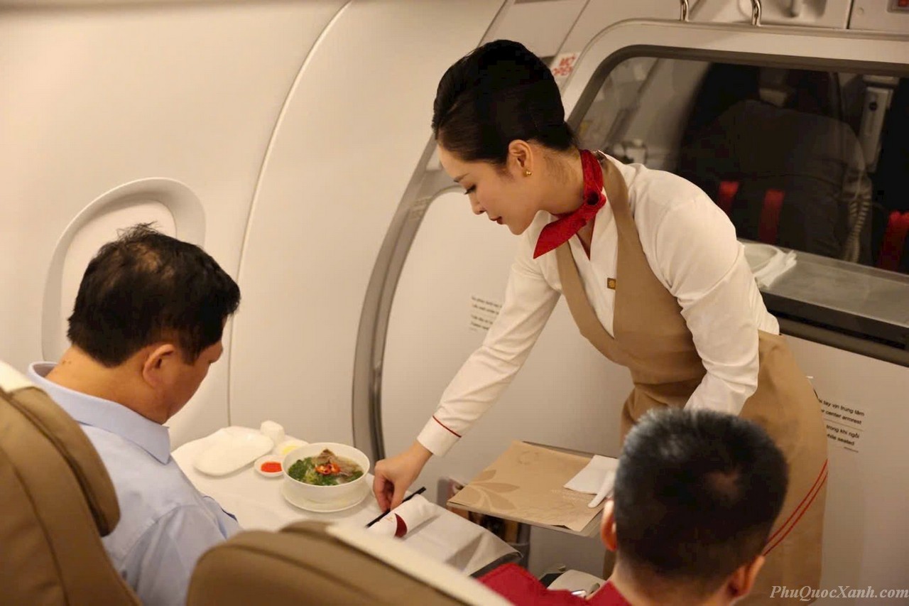 - Hạng Premium/Thương Gia: ghế ngả sâu, suất ăn fine dining (món Việt tinh tế, trình bày đẹp), ưu tiên lên máy bay.